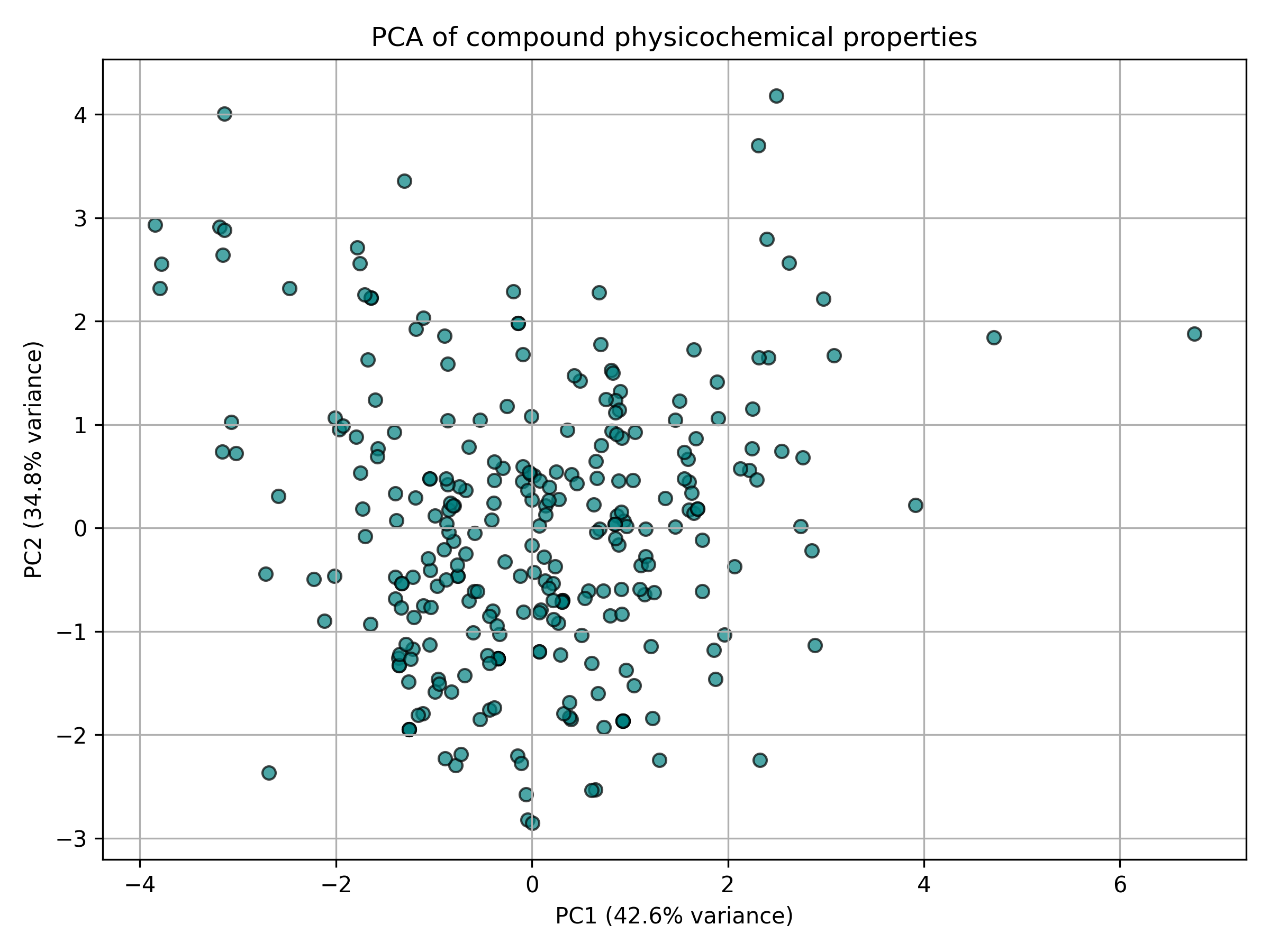 5. PCA highlighting structural outliers (Tanimoto < 0.25)
